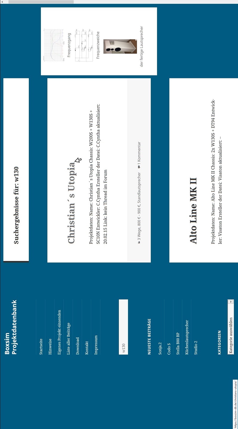 Bei neuen Projekten habe ich darauf verzichtet, Bilder der Weichen und des simulierten Frequenzgangs einzupflegen, da diese in den Boxsimprojekten enthalten sind welche man sich runterladen kann. Ich weiß, dass damit etwas Komfort verloren geht. Ich muss das aber mangels Automatisierungsmöglichkeit für jedes Projekt manuell machen und habe beschlossen meine Zeit weniger in diese Bilder zu investieren und mehr in die Webseite generell.