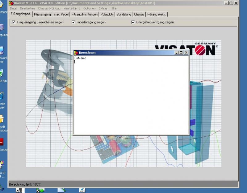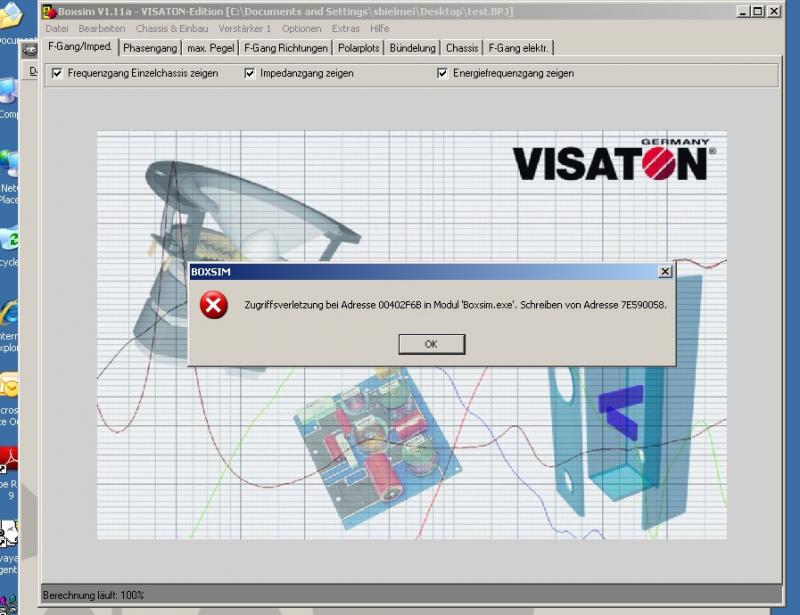 Boxsim 1.11a zeigt den Fehler reproduzierbar, wenn der in den Projekteigenschaften angegebene Frequenzbereich unter 400 Hz endet, was hier aber nicht der Fall ist.