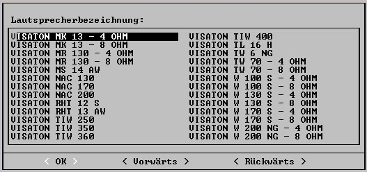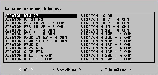 @ UweG: ich hätte da noch je eine alte Visaton-Datenbank für SpeakerPro6.0 bzw. AudioCad8.0 aus dem Jahr 1993.