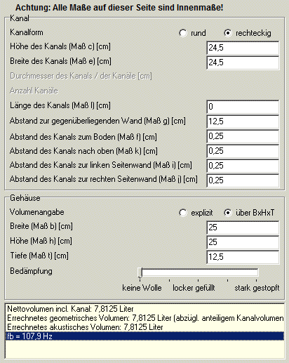 Kann mir jemand die Simu so umbauen, dass daraus ein biventilierter Bandpass mit 25x25x25 cm Gesamtvolumen und mittiger Teilung wird, dessen Öffnungen beide gleich und möglichst groß sind?
