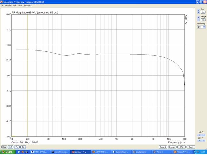 in letzter Zeit frag ich mich immer wieder wie das reale Ergebnis einer fertiggestellten Box aussieht, stimmt es mit der Simu überein, was macht der Hörraum aus der abgestrahlten Energie der LS? Wo wären wirkliche Änderungen nötig? Abhilfe kann hier nur die Anschaffung und Verwendung entsprechender Messtechnik sein um das alles schlussendlich kontrollieren zu können. Die Wahl fiel auf Arta, ein umfassendes Programm welches dank des Arta-Kompendiums auch für Anfänger geeignet scheint. An dieser Stelle vielen Dank an die Leute die dieses Anleitung zur Verwendung dieses Programms geschrieben haben, wirklich sehr verständlich und einfach gehalten.