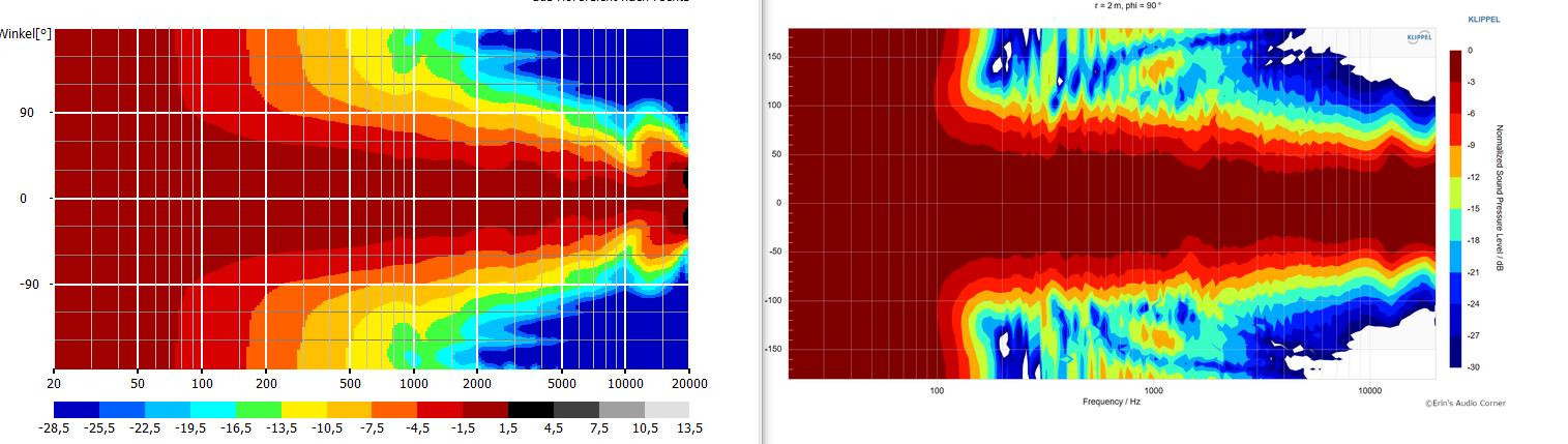 Von "besser" weil "breiter abstrahlend" würde ich hier nicht sprechen. Mit der Fluctus-Frontplatte ist der Frequenzgang ungleichmäßiger und bündelt im oberen Hochton stärker. Sieht man dem inneren Bereich der Schallführung durchaus auch an. Mit der Standardplatte verläuft der -3dB-Bereich schön gleichmäßig.