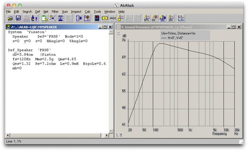 Mein Ziel ist es eine Schreibtischbox zu bauen, die den FRS 8 8Ω verwendet und auf dem Front Loaded Tapered Quarter Wave Tube Prinzip basiert. Das bedeutet, TQWT + Bassreflex. Um die Entwicklung zu vereinfachen möchte ich AkAbak verwenden und den Lautsprecher erst bauen, wenn die Simulation gute Werte ergibt.