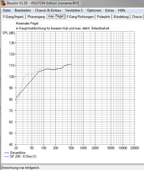 2. bei max. elektrischer Belastung des GF200 bringt er in BR bei 40 Hz ca. 102 dB.