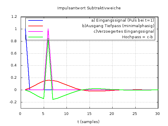 Bei einer Subtraktivweiche hingegen ist nur ein Zweig minimalphasig - nicht aber der zweite durch Subtrakion gewonnene. Genau darauf beruht die linearphasige Summe.