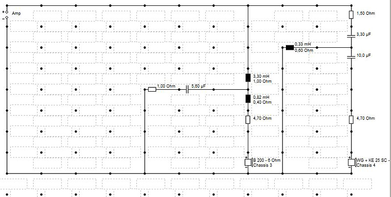 Die passiven Weichenbauteile für MT + HT (L + C; außer R) wurden vom Originalweichenplan übernommen und nicht durch den Optimierer geschickt.