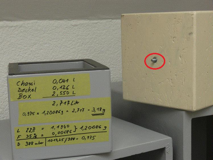 Derzeit habe ich neun verschiedene, abgestufte Test-Boxen zwischen 1,5 Liter und 60 Liter. Hinzu kommen jeweils verschiedene "Steine", die das Volumen verringern können. Alles jeweils in einer luftdichten Ausführung.