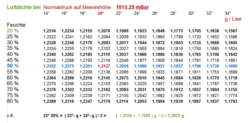 Und die Ergebnisse werden weder in Mexico-City noch in Hamburg identisch sein mit denen in Oberwiesenthal, weil du Temperatur- und Luftdruck Unterschiede ebenfalls berücksichtigen mußt!