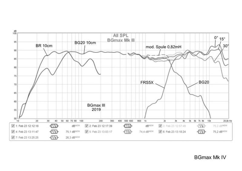1) Trennfrequenz entsprechend hochlegen. Aufgrund des Durchmessers des FRS 5 X und Abstandes zur BG 20 Membran wird der Einbruch vermutlich bei um die 1700 Hz liegen. Darunter braucht man den FRS 5 X gar nicht einsetzen.