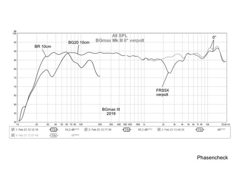 Da der FRS 5 X keine eigene Schallwand hat, werden tiefere Frequenzen "um den Korb" gehen und am BG 20 und der Gehäusewand reflektiert. Das mit BoxSim zu simulieren ist leider nicht möglich.