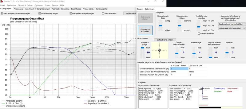 In Boxsim kann ich zwar die Größe der Box und die Lage der Chassis sehen, aber Auslegung des B100 Mitteltonkastens und BR Rohr, bzw Kanal würde mich interessieren.