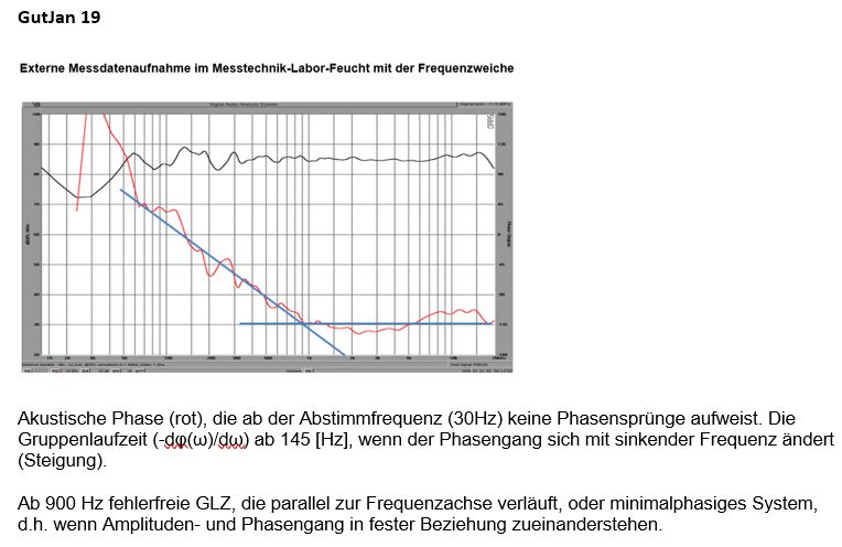 Zum Beispiel, die zu niedrigeren Frequenzen hin ansteigenden Gruppenlaufzeiten. Da übliche Frequenzweichen und auch die verwendeten Treiber minimalphasig sind (kausales Prinzip) MUSS das so sein, das gibt schlichtweg die Mathematik schon vor.