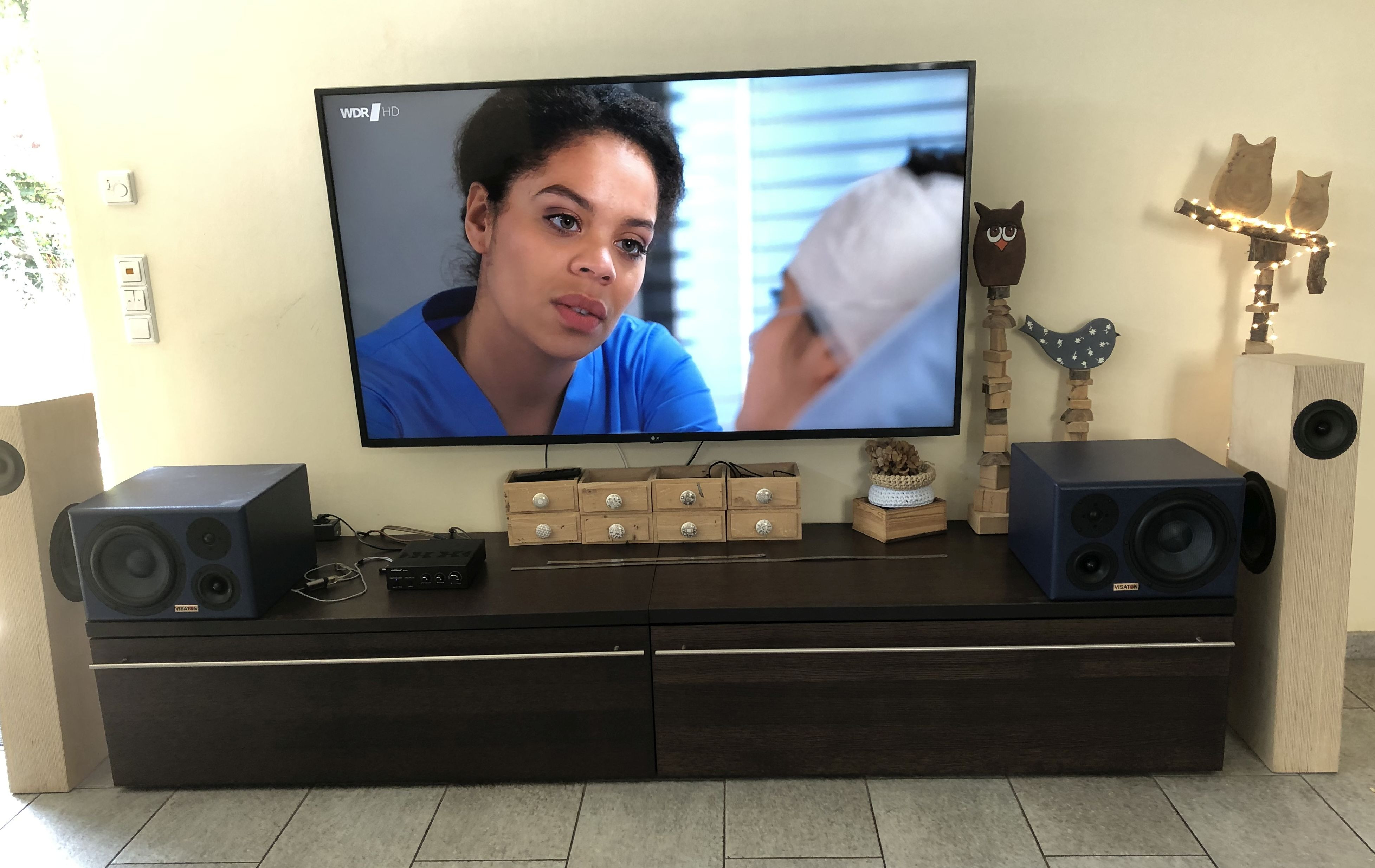 Die Winkelmessungen werden geprägt von Abstand und die dadurch entstehenden Reflexionen von Lowboard und Boden, ... also schlussendlich einen Einbruch wegen naher angrenzender Wände, ... im Fernfeld verschwinden diese Einbrüche
