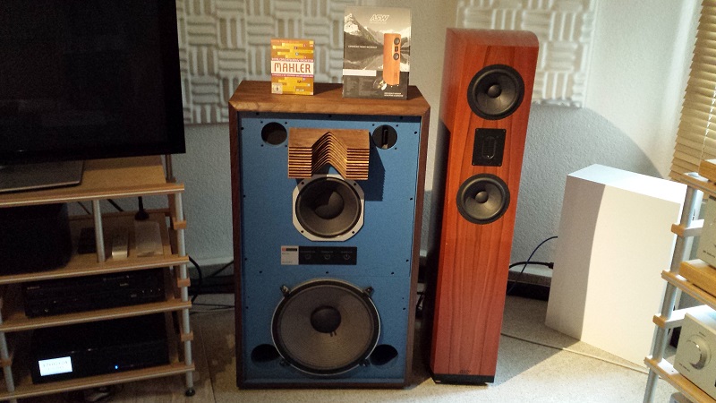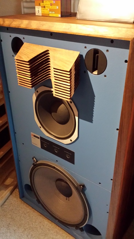 Als ich aber vor kurzem durch Zufall einen Hifi-Laden in unserer Stadt entdeckt habe, welcher in seinem Hörraum unter anderem auch 2 JBL 4343 stehen hat, war es um mich geschehen. Da diese mit einem Paarpreis von 6000 € und mehr für mich natürlich nicht erschwinglich sind und auch in Anbetracht der Größe nicht in frage kommen, mir aber vor allem die Optik (und der Klang natürlich auch) gefällt, wollte ich mir ein Paar kleine Monitore in ähnlicher Optik bauen.