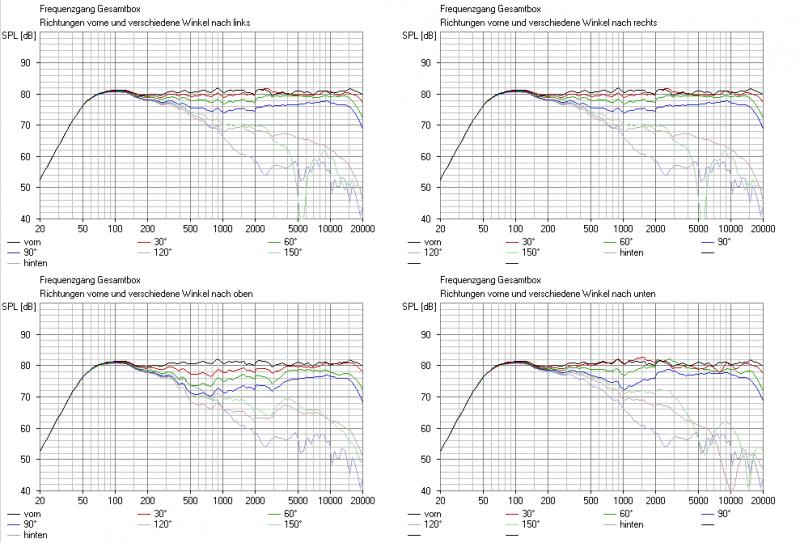 Frequenzgang unter +/- 30° L/R und Oben sehen auch guut aus