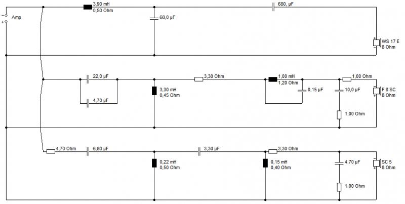 Da der F8SC heute nicht mehr so einfach zu bekommen ist, würde ich auf FRS8(M) ausweichen, falls einer die Boxen nachbauen will. Allerdings müsste man hierfür natürlich die Mitteltonweiche anpassen.