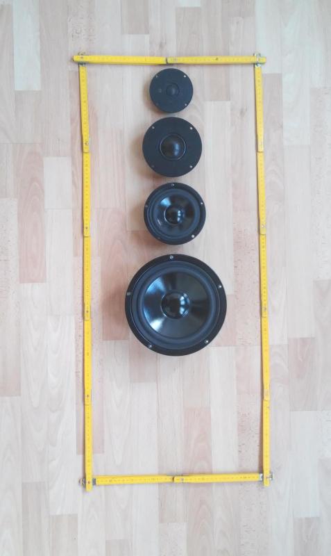 Habs Grad mal im Rechner optisch probiert, sieht auch mit meinen Chassisgrössen gut aus, übernehme ich so. Somit steht auch mehr als genug Volumen für beide Chassis zur Verfügung. Eventuell könnte man das Mitteltongehäuse etwas tiefer, oder Keilmässig ausführen, zwecks von vornherein Bekämpfung stehender Wellen?