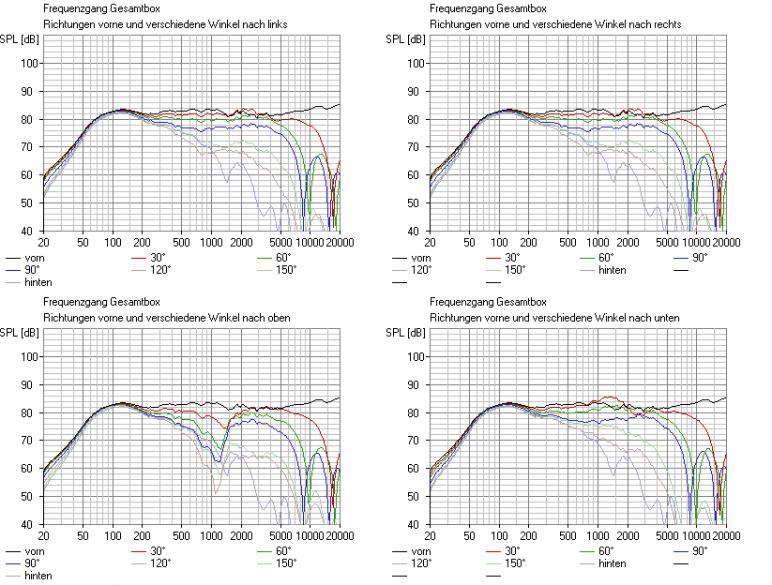 Da die Boxen für den Schreibtisch gedacht sind, habe ich alle drei Chassis mit Beugung "unten" optimiert.