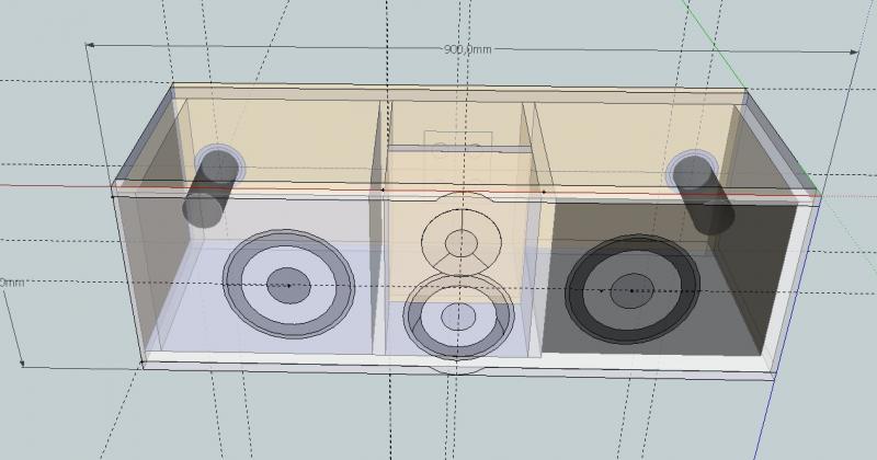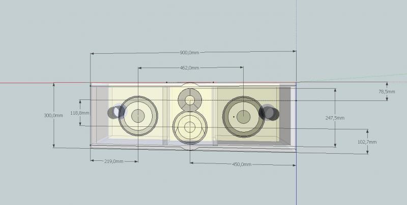 Das sind alles Kleinigkeiten, viel wichtiger ist eigentlich wie der Center später im Raum untergebracht ist. Angenommen er liegt auf einem Board oder ähnlich musst du die Höhe mit berücksichtigen und die Gehäusemaße entsprechend anpassen(als ginge das Gehäuse bis zum Boden). Zudem bei jedem Chassis unter Schallwand&Position den Haken bei unten entfernen, damit simulierst du den Boden. Das sollte nämlich eine deutliche Anhebung im Bassbereich zur folge haben.
