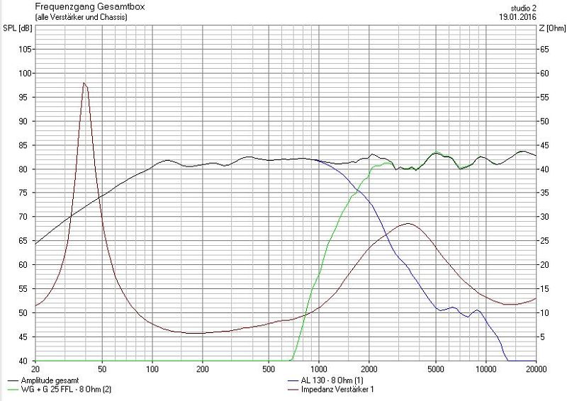 Dann kommt dieses RCL Glied am Eingang der Box ran. Dann ist aber nur der Impedanz Hügel weg, zwischen 1000Hz bis 10kHz. Mal ohne Gewähr