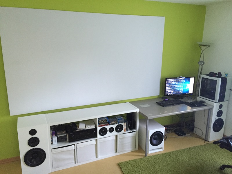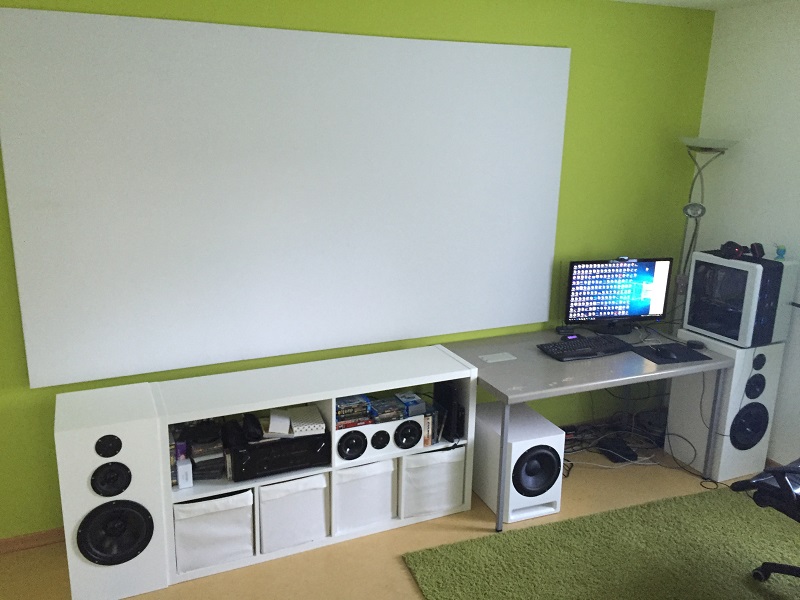 Da würde ich dann später irgendwann mal Direktstrahler an die Wand setzen oder so. Da ich aber zu 70% Musik höre und das auch eher selten am richtigen Hörplatz, wollte ich die Rears vorerst weglassen. (damit hat man dann ja auch mehr Geld übrig für die Fronts/Center) -> Aufgrund des eh seltenen richtigen Hörplatzes wollte ich die Sonjas gleich alle kleiner bauen, damit sie unter die Leinwand passen.