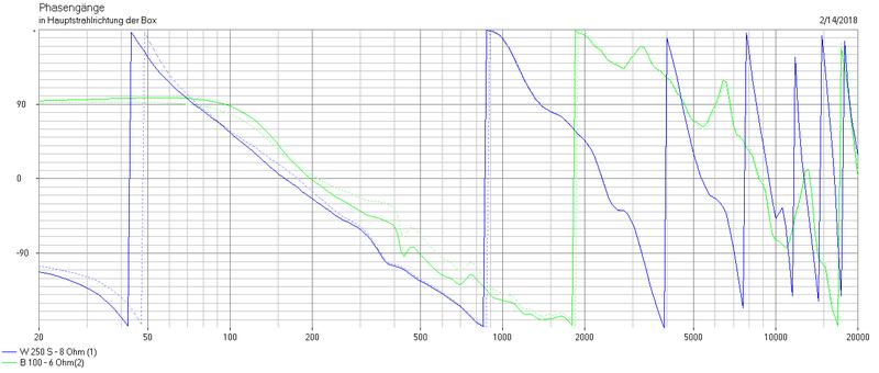 Fest stecke ich etwas bei der Anpassung des HP vor dem B100. Anbei der aktuele Stand, vom Frequenzgang m.E. gut, die Phase gefällt mir nicht so super
