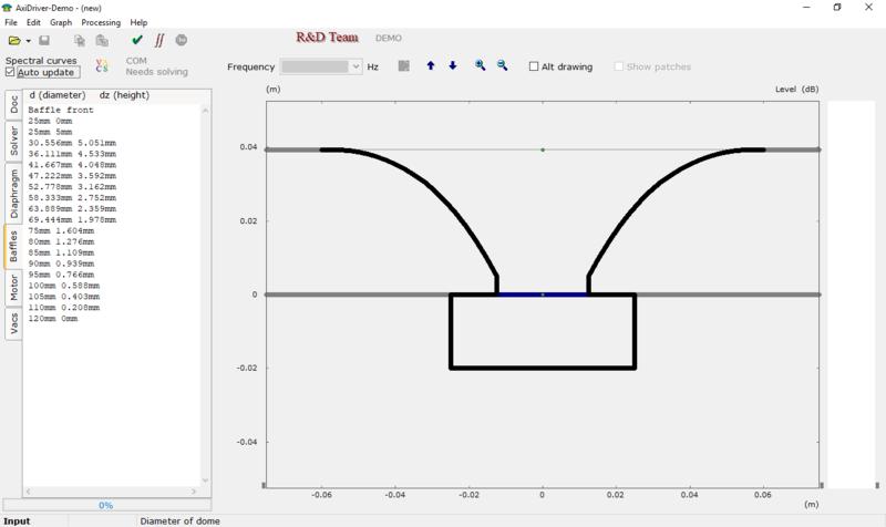 Zum Versatz, muß der in der Exceltabelle geändert werden? In AxiDriver finde ich nur Hd (heigt of Dome) da kommt aber nix gescheites bei raus bzw. in´s minus kann man das ja nicht setzen. Ich hab es mal in der Exceltabelle versucht die 5mm neben den 25mm in Feld C3 zu verändern. Dann kommt aber nur schreckliches bei raus. Ich vermute hier da in AxiDriver dort dann eine Kante zu sehen ist, das es dadurch zu Kanteneffekten kommt. Bzw. die Kante ist ja real nicht da. Daher besser auf null lassen oder? Und dann ausgehend davon simulieren wie Anfangs gedacht.