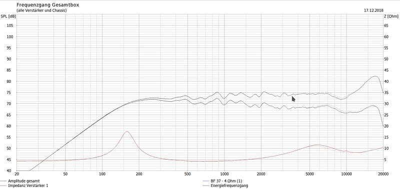(Das hat Nichts damit zu tun, finde ich jedoch ebenfalls bemerkenswert: Zur Bassanhebung habe ich mit verschiedenen Bassreflexrohrlängen experimentiert. Ein Rohr mit Durchmesser 1.5 cm brachte in den Längen 3.5, 10.5 und 15.5 cm keine wirklich messbare Anhebung des Basses - deshalb gehe ich nun von einem geschlossenen Gehäuse aus.)