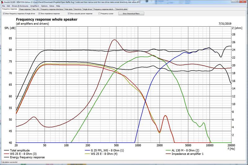 The directivity peak around 500 Hz could be reduced by moving the woofers closer to the AL130M.