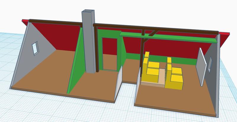 So, über das lange Wochenende habe ich es endlich geschafft, den Dachboden im aktuellen Zustand zu vermessen. Dann habe ich mir in Tinkercad ein 3D-Modell davon gebastelt und mit grün die geplanten Wände eingesetzt.