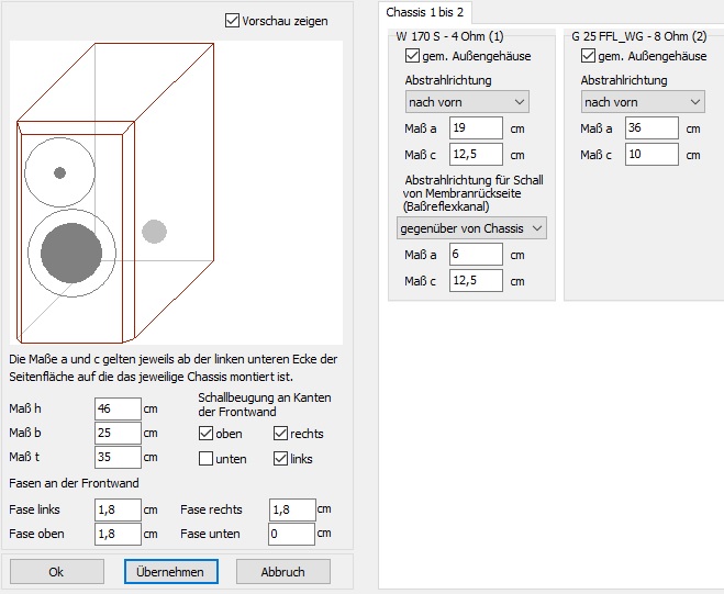 This is based on the data from Visaton and it is also clearly visible in the low area: higher or lower tuning freq. gives a poorer view.