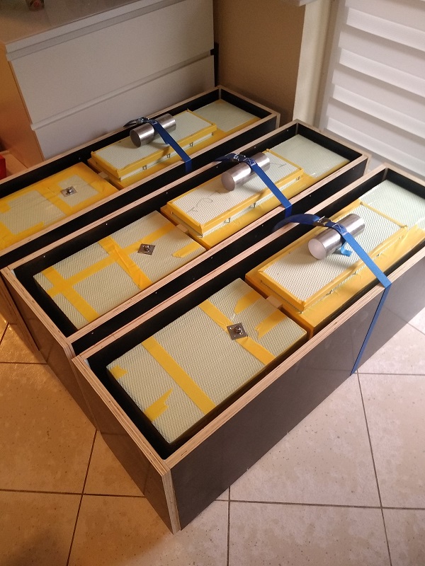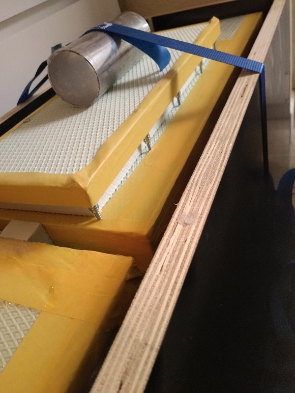 Die Innenvolumen sind mit Frischhaltefolie bespannt da ich noch Alubutyl aufkleben möchte und Trennmittel dann hinderlich wäre.