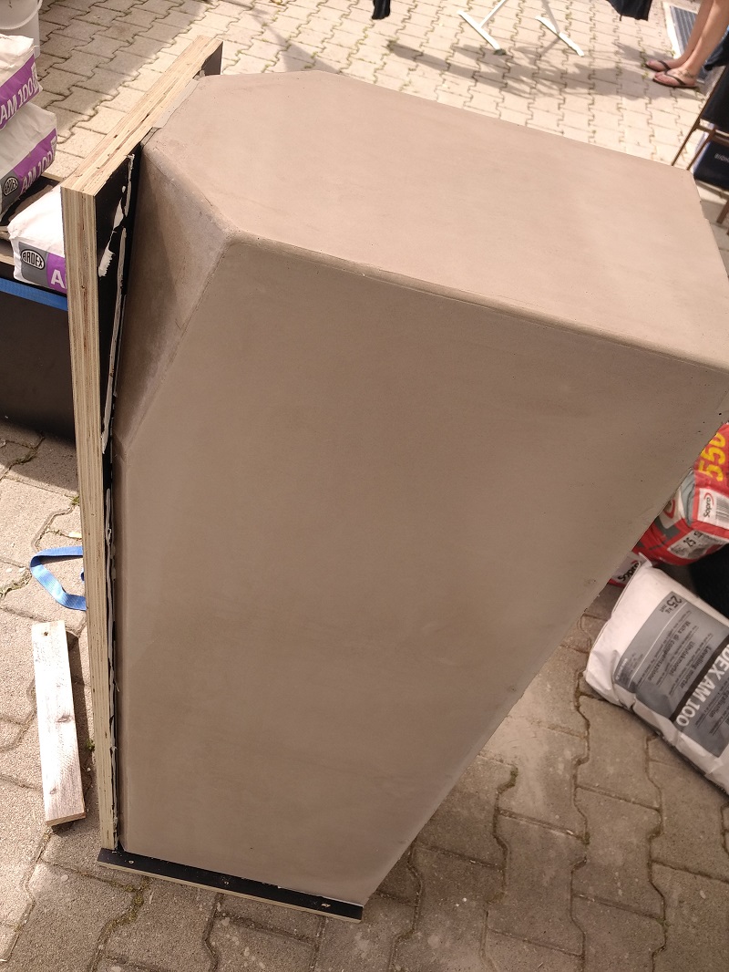 Die Innenvolumen aus 2cm Styrodur waren jedoch etwas zu instabil, bei zwei Styrodurwürfeln gingen die verbindungen etwas auf und es liefen ca 5cm Material mit rein, diese Zementklötze galt es heute aus den Lautsprechern heraus zu bekommen, jedoch ohne größere Schwierigkeiten da die Masse zu 95% mit Styrodur ummantelt war.