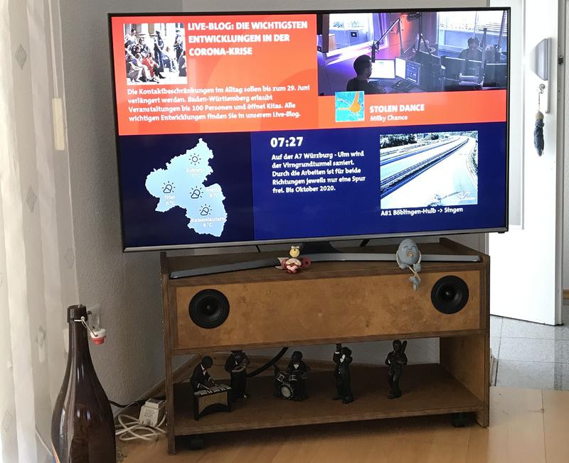 ich höre jetzt ne weile, und zwar jeden Abend während der Woche beim TV-Schauen, die Soundbar, und ich bin immer mehr begeistert, mit wie wenig man zufrieden sein kann, ein Subwoofer im Boden der Soundbar ein GF200 in Doppelschwingspule mit einer Serienweiche zusammen mit den B80 betrieben, und angetrieben von einem einfachsten Digitalverstärker aus dem Chinasortiment, … an der Mittenkorrektur beim B80 habe ich mich eine Weile aufgehalten und dies passt nun auch, betrieben wird der GF200 mit Hochpass, da passt die Simulation leider nicht, der Gf200 macht deutlich mehr Pegel was absolut nicht negativ empfunden wird, ganz im Gegenteil, jeder der es gehört hat merkt ein deutliches Bassfundament, und das ist gut so, … Wo steht denn der Subwoofer, wird immer wieder gefragt, das Teil klingt deutlich besser als meine viel teure …, ist auch ein Satz was ich sehr häufig höre, … Uli hat die erweiterte Funktionalität des Tonmöbels auch in Beschlag genommen und hat gleich mal dekoriert, …