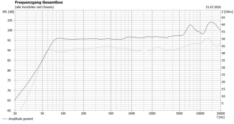 meine ganzen Ideen eine NEUE VERBESSERTE VARIANTE zu kreieren, verläuft sich im Sand, denn alles was ich mache geht wieder in Richtung deutlich mehr Leistungsbedarf bei gleicher Lautstärke, ... der oben gezeigte Kleinverstärker schafft 2x50 watt, was nicht gerade viel ist, aber es reicht beim B100 richtig gut Pegel zu machen. Ich habe mal die Variante mit den beiden B80 im Vergleich angehängt, dieser ist zwar gleich laut im Maxpegel, benötigt dazu aber deutlich mehr Leistung, ...