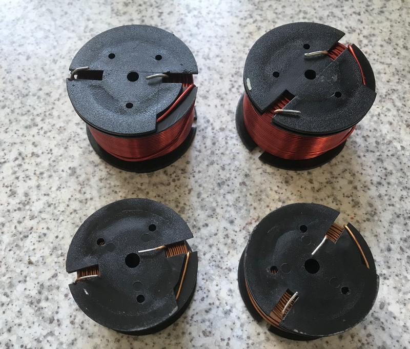 nachdem ich mal wieder sehr viele Freunde um mich kümmern, danke Jörg, ist eine weitere Entscheidung zu fällen, ... Jörg hat mir sehr schnell ein Pärchen der Wunsch-Spulen geschickt, die haben 1.5 mH und haben einen Widerstand von um die 0,3-0,4 Ohm, also genau was die Simulation voraussagte dass man wenig Grundton verliert, ... Eine Spule die ich noch hatte eine 1.65 mH Spule mit 1 mm Drahtquerschnitt hat gemessene 1,1 Ohm.