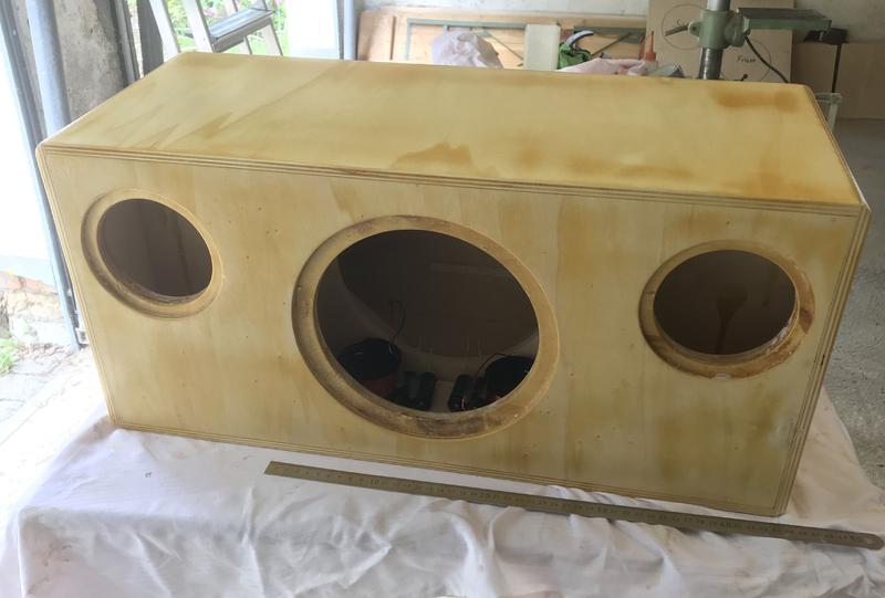 Nachdem ich jetzt weiß wie schwer die Weiche genau wird und ich die Beschichtung komplett aufgetragen habe, kann ich morgen sehr genau abschätzen wie schwer in Summe die Boombox wird. Bin selbst schon sehr gespannt. Ich habe zwar 750 ml PUR-Lack gekauf, davon aber wieder jede Menge runtergeschliffen, sodass das Rohgehäuse geschätzte 6kg hat, mit Weiche und Chassis und einigen Kabeln werden es leider etwas mehr als 10kg. Aber ich denke dies ist noch sehr gut transportabel.