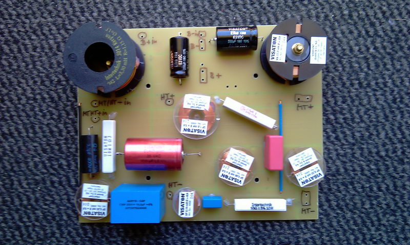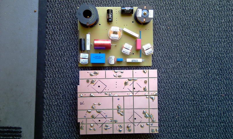 Und einmal für eine neue nach Plan gebaute Concorde WG. Konsequent auf bestes Ergebnis mit Folien gebaut. Außer natürlich die großen Elkos im Basszweig, das sind raue Typen.