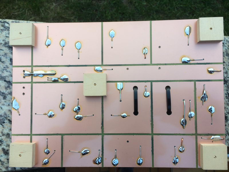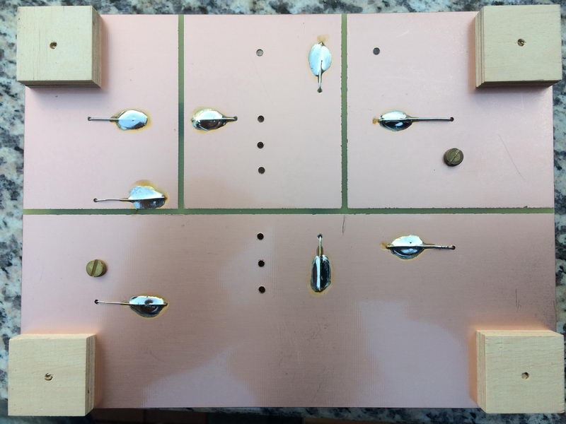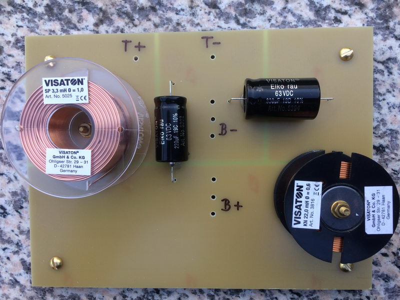 Das geht natürlich auch auf einem Holzbrett (maximal 180 mm breit, sonst geht es nicht mehr durch die Bassöffnung ins Gehäuse) mit Drahtbrücken, die Vorlagen findest Du nun hier.