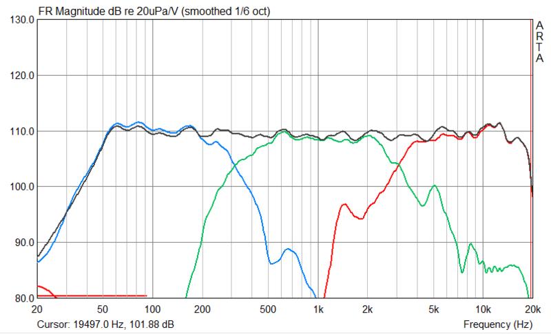 Bestückung BG20, BG13P, TW6NG, also Dreiwege mit Konus-Hochtöner. Der BG13P ist ein ganz prima Mitteltöner, insbesondere wenn man den Schwirrkonus entfernt. Die passive Weiche ist mit durchgängig Filtern 3.Ordnung zwar etwas aufwändiger, aber du hast ja DSP.