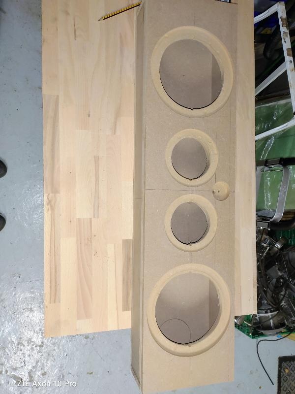 Da die Höhe des Gehäuses fest war und sich aus dem Platz zwischen Sideboard und TV ergeben hat, ist zwischen TT und Gehäusekante nicht viel Platz.