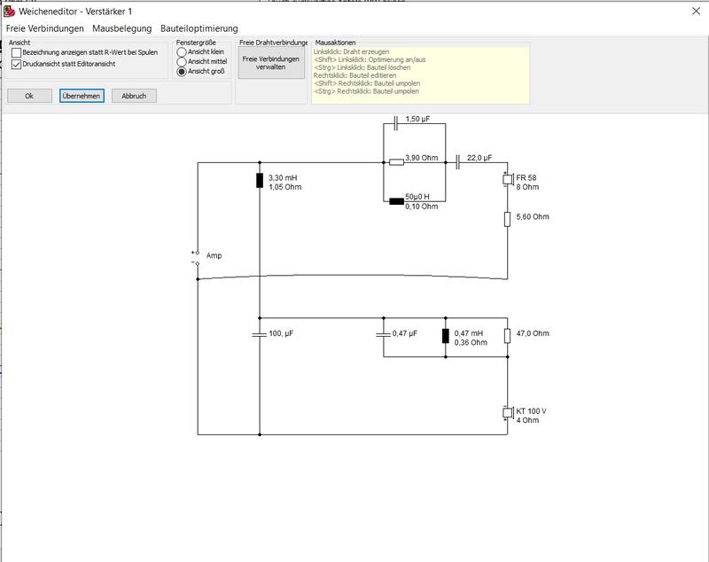 Anfangs habe ich den Aufbau der Frequenzweiche wie bei der "Pacto" Gewählt, und mich daran orientiert.