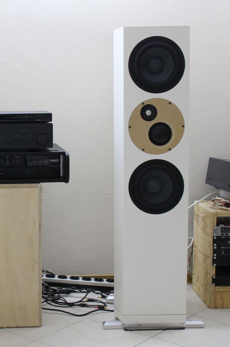 B100 habe ich noch nie gehört, aber Papier hat mir eigentlich immer gefallen. Anordnung wie Concorde, nur ein Bass unten dazu. Alle Volumina jeweils in eigenem Gehäuse innen getrennt.