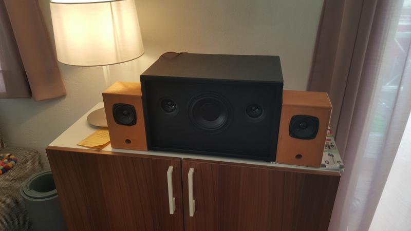 Ich hab eben mal die 2 CT 242 (FRS8 4 Ohm unbeschaltet) neben die Boombox gestellt und angeschlossen, was soll ich sagen, gefällt mir deutlich besser als wie mit den FR58 + Waveguide + Rahmen