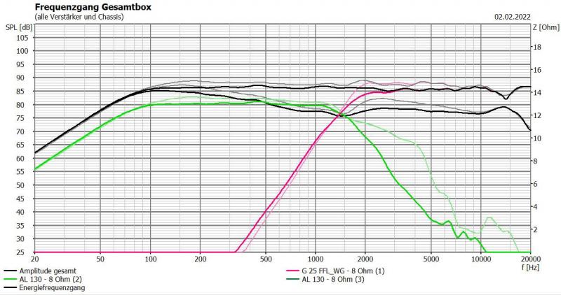 wollte mich mal zum derzeitigen Stand melden. Ich hatte / hab hier so meine Problemchen mit den Couplet-WG. So richtig komme ich klanglich noch nicht mit der Frequenzweiche klar. Im TT-Zweig habe ich den 82 uF im Tiefton auf 67 uf gesetzt, den zweiten Kondensator im HT-Zweig augenblicklich auf 12 uf und den Reihenwiderstand auf 4,3 Ohm (rechnerisch damit 4,40 dB Dämpfung). Im ersten Moment bei leiser Musik ok, aber auch nicht langzeittauglich. Deutlich zu harsch und damit nervig. Zwischenzeitlich hatte ich auch jede Menge anderer Varianten probiert die mich aber alle nicht vom Sockel gehauen haben. Bremse ich nur den HT ein, wird der Sound flach, verlieren Stimmen ihren Glanz und die nervige Schärfe bleibt. Das fällt besonders bei Stimmen auf. Da passt irgendwas noch nicht zusammen. Die Weichen habe ich zigmal kontrolliert, die Bauteilwerte passen und ich sehe da keinen Fehler.