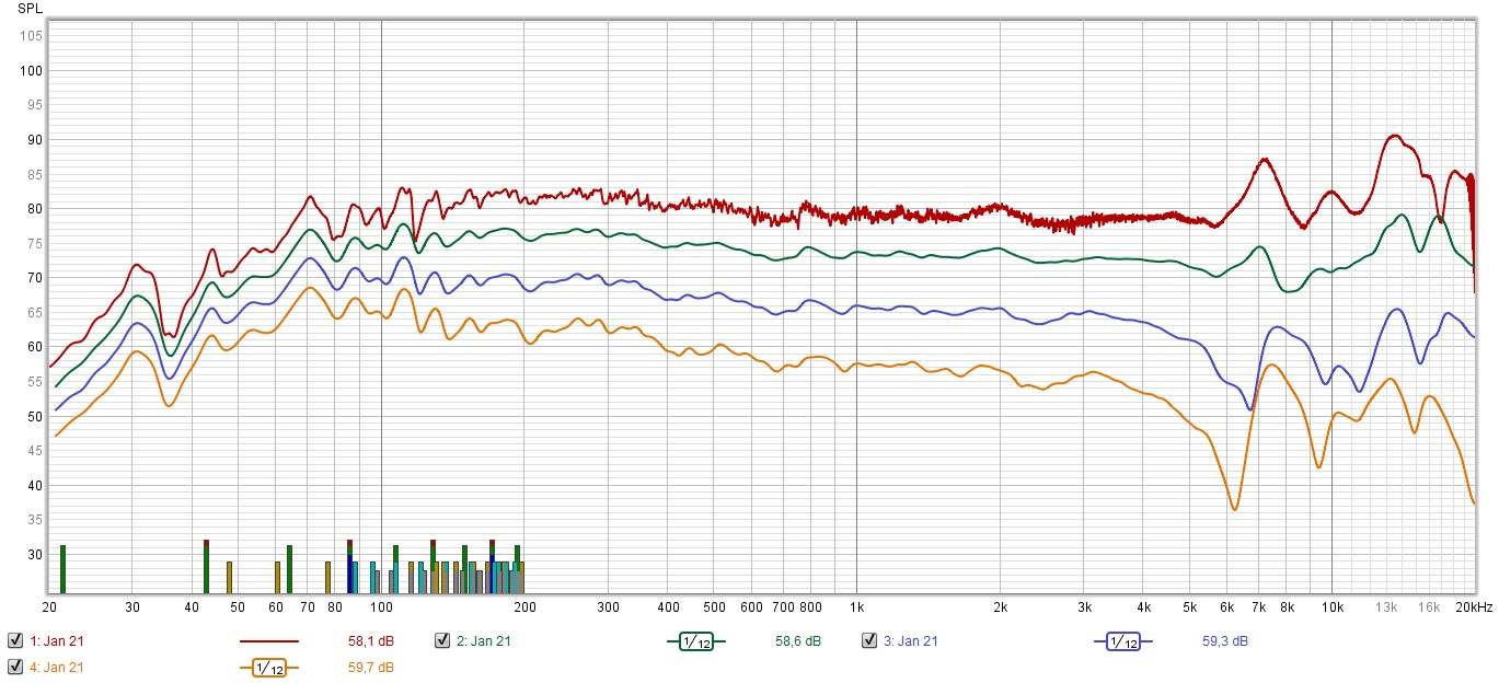 ich habe letzte Woche die Antimode für manuelle Korrekturen des Basses genutzt und gestern Abend hat es mich getrieben das Ganze im Hochton zu verfeinern. Meine Aussage die ganzen Jahre, seit dem ich den B100 kenne, der Hochton benötigt keine Korrekturen, ... Habe die zwei Täler und Berge im Fernfeld aufgefüllt, ... erste Auswertung ist dies hier im Bild: