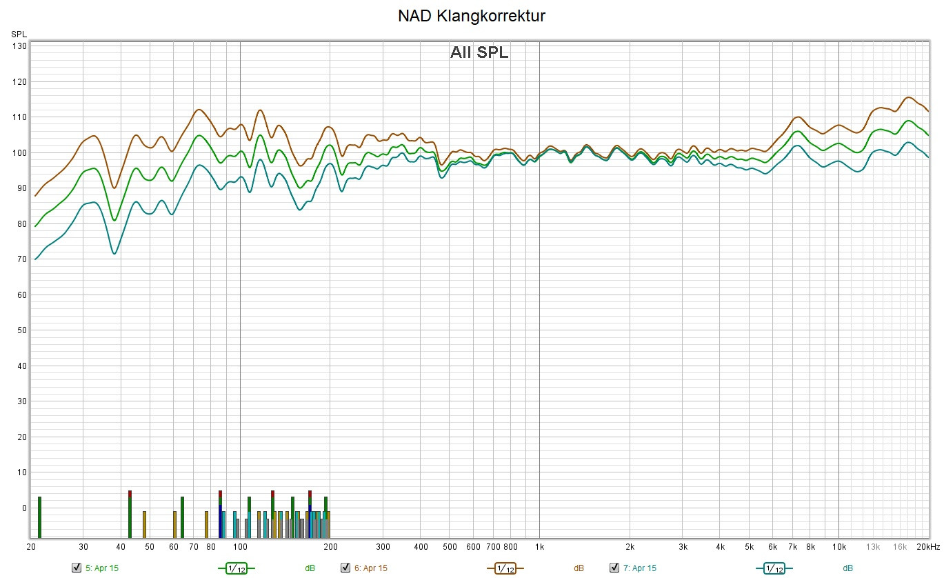 ABER, ich habe immer wieder festgestellt, dass das Audaphon rund 20 dB an Pegel wegnimmt, dies habe ich jetzt auch wieder festgestellt! Deshalb musste ich den Pegel um diesen Betrag nachsetzen, ... beim NAD kein Thema, ...