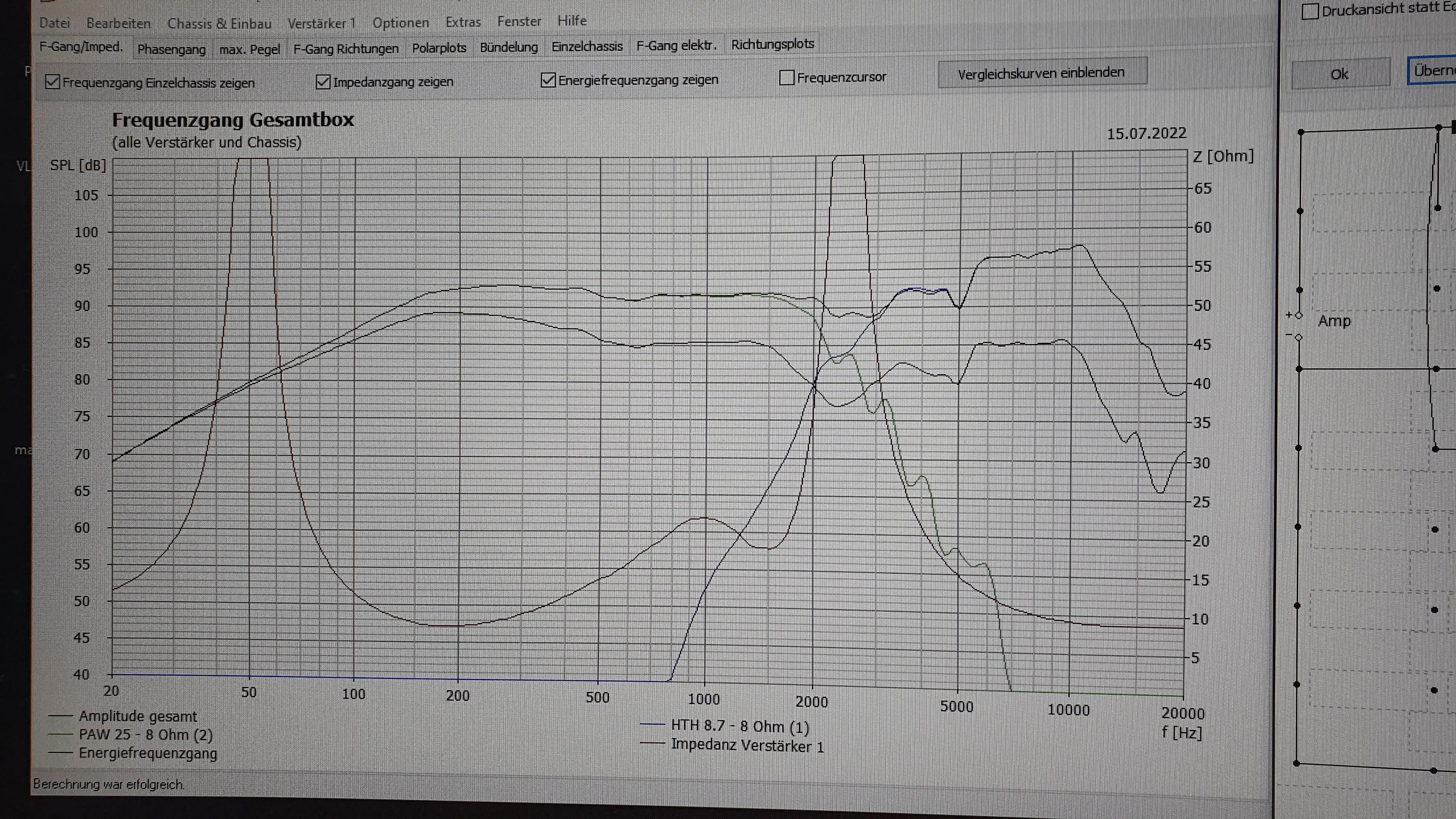Manche Aussagen vielen drauf, das der Verstärker zu klein ist und dann die Chassis verzerrt, könnte das ein problem gewesen sein? Zur Lautstärke im allgemeinen, da die PA-Box konnten wir recht laut aufdrehen, aber wer schon mal auf einen Festival war, besonders auf dem Campingplatz, weiß welche Lautstärken vorhanden sind. Vielen hatten dort die oben genannten PA-Partyboxen, da kam meine selbst gebaute aber kein Stück dran..