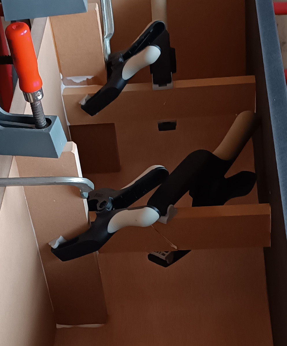 Könnten mehr Streben sein und auch von Front zu Rückwand. Ich verleime immer die Front großflächig mit der Strebe und verschraube sie mit der Rückwand nachdem diese montiert wurde.