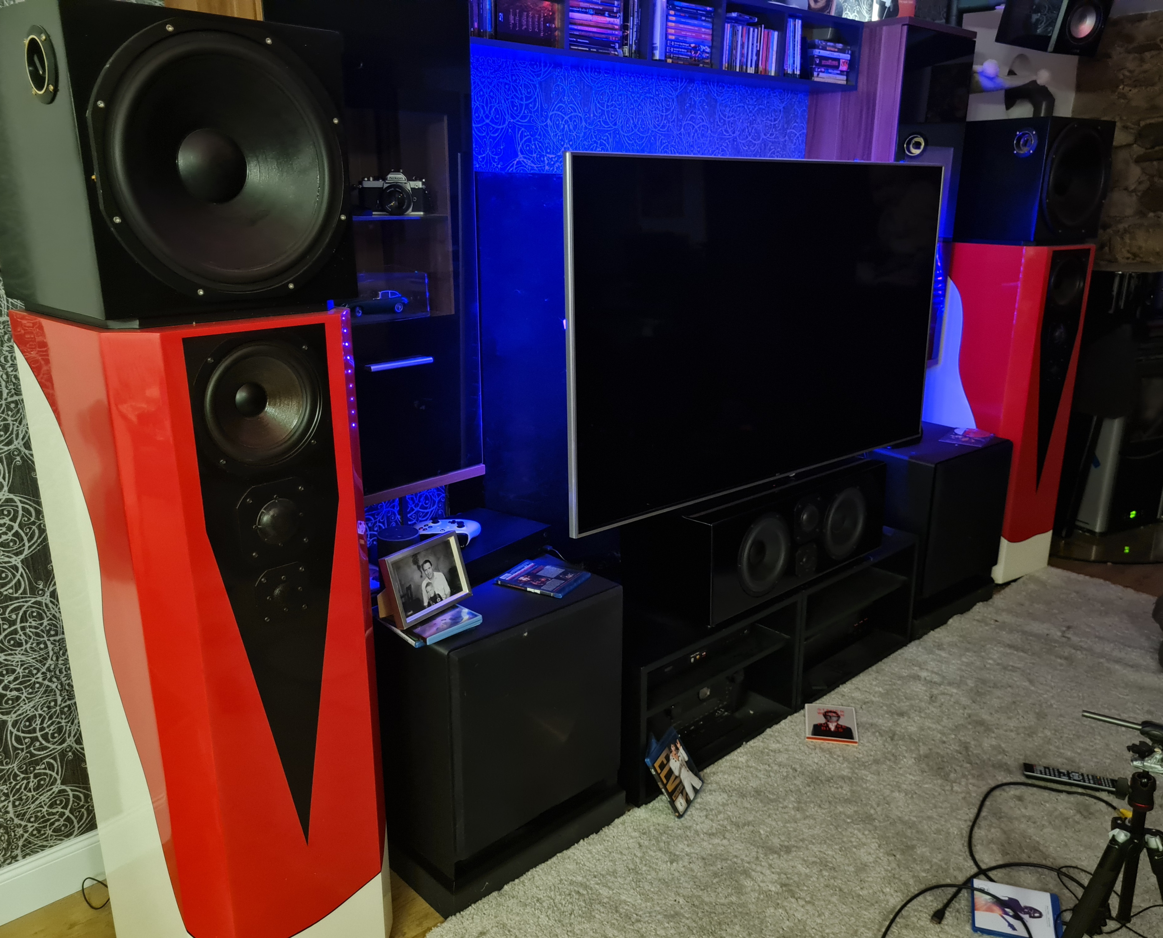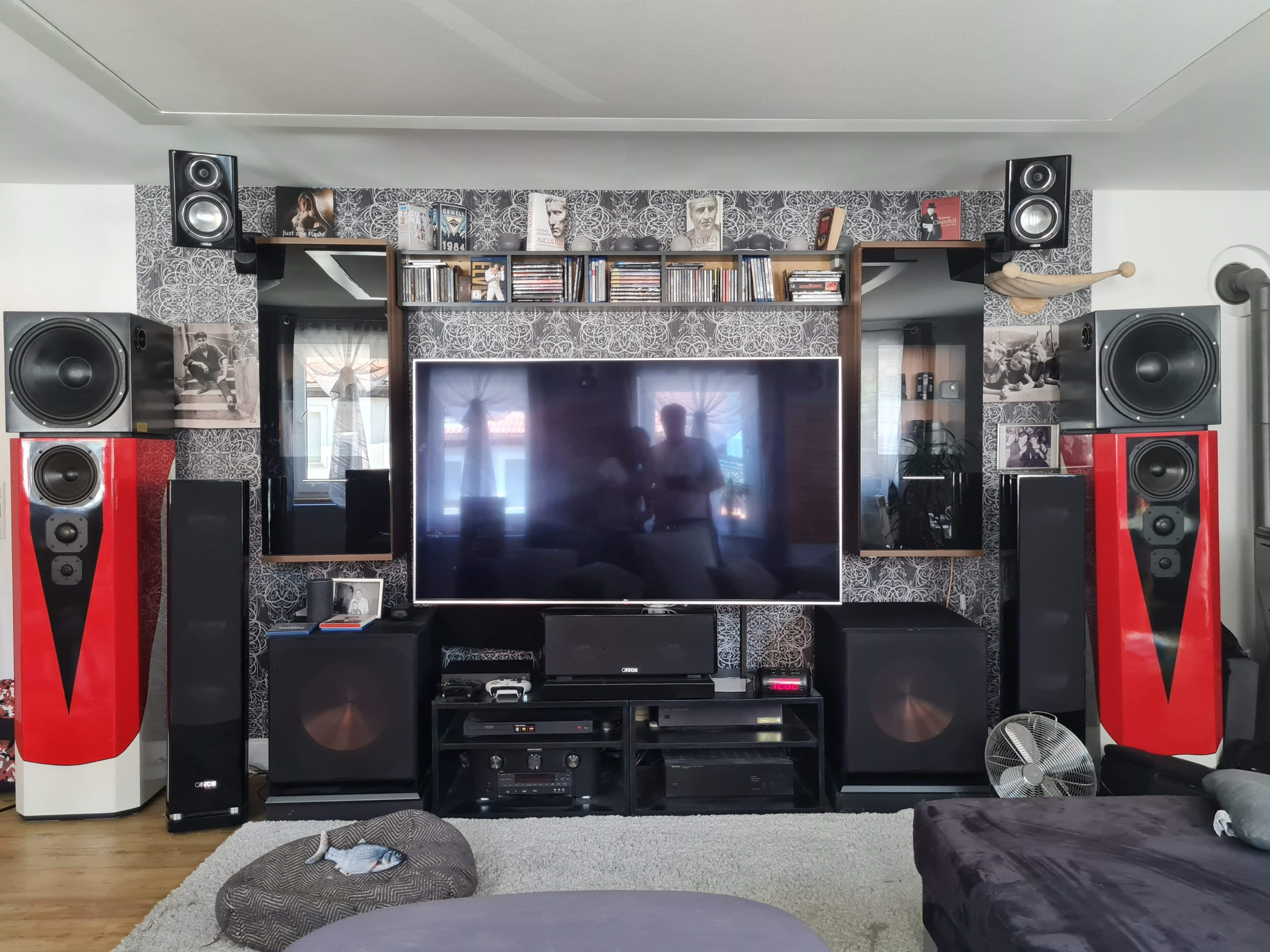 Die Mains sollten vom Design in Richtung Canton Ref3 gehen aber natürlich ohne Ovale Form.... Also oben Mittel-Hochton im stark verjüngten Gehäuse und unten die zwei GF200
